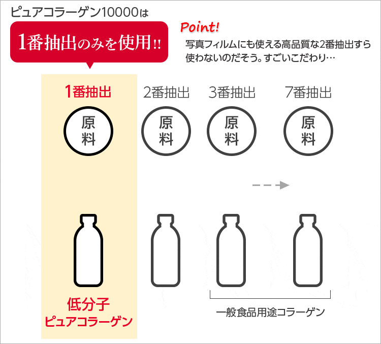 原料から最初に抽出された低分子ピュアコラーゲン
