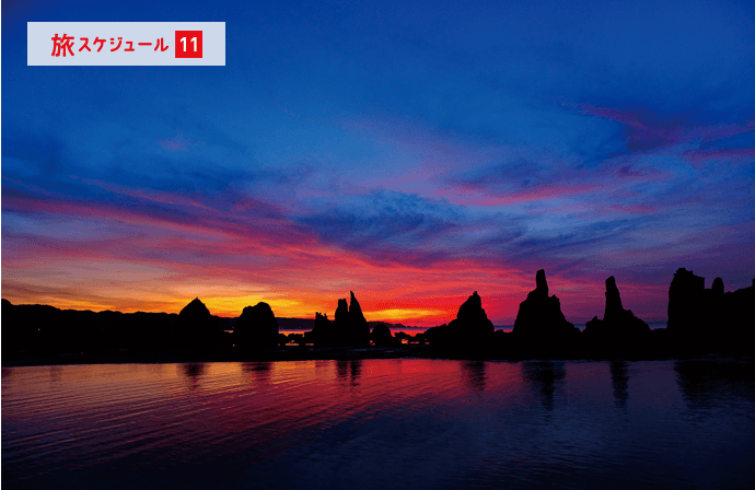太平洋に面した海岸線は独特のリアス式海岸になっていて、様々な奇岩・怪石を見ることができます。串本以外にも、紀伊半島の沿岸には大地のエネルギーを体感できるたくさんの名勝があり、時間によって異なる表情を見せてくれます。
