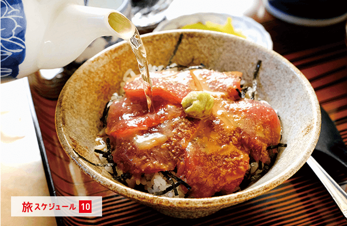 かつおの漬けを1杯目は丼、2杯目はお茶漬けにして食べます。県外からのリピーターも多数。