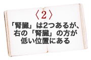 〈3〉「腎臓」は2つあるが、左の「腎臓」の方が低い位置にある