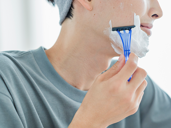 男性のスキンケアでは、ひげそり後の保湿が重要です。男性の肌は保水力が低いにもかかわらず、日々のひげそりによる摩擦ダメージにさらされています。摩擦は肌への大きな負担になり、乾燥や肌荒れにつながります。毎日のスキンケアとしては、朝と夜1日2回の洗顔で余分な皮脂を落とし、洗顔後は化粧水などでしっかり保湿すること、そして、ひげそり後にはとくにていねいに保湿してあげることが大切です。