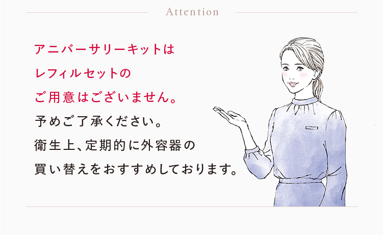 アニバーサリーキットはレフィルセットのご用意はございません。