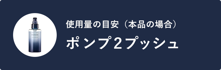 洗顔の後、ポンプ2プッシュを手に取り、やさしく顔全体になじませます。