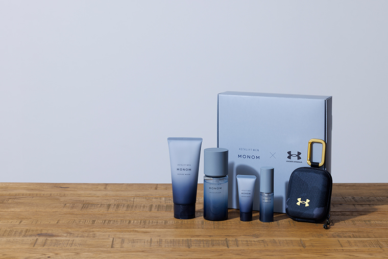 - アスタリフト メン モノムと世界的人気スポーツブランド「アンダーアーマー」がコラボレーションした限定キットが登場。アスタリフト メン モノムの洗顔料、保湿液と「アンダーアーマー」のコンテイン マイクロケースをセットにして特別価格でお届けします。